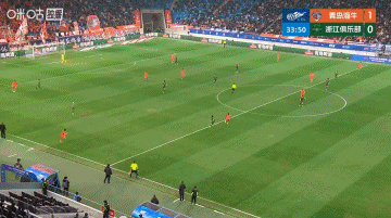 第22分钟,浙江队右路传中,禁区内瓜里拉帕高难度抢点打门稍稍偏出↓