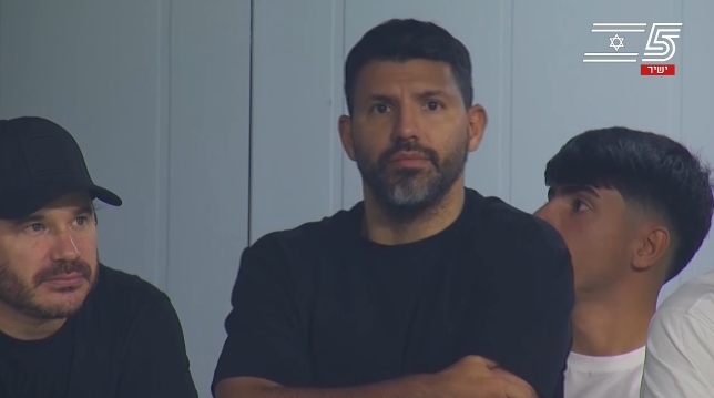 半场时,镜头给到看台上,阿圭罗现场观战。